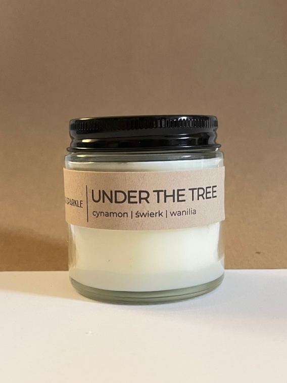 Świeca sojowa UNDER THE TREE przenosi w świąteczną atmosferę zimowego lasu 🎄To jak przechadzka po ośnieżonym lesie, gdzie zapach sosnowych igieł miesza się z nutami cynamonu i delikatną słodyczą wanilii.